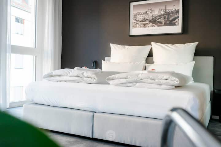Исто така, ја споделуваме нашата страст за патување со нашиот нов апартман во Нирнберг од 2024 година! Во 2025 г. беа додадени уште два апартмана. Со поглед на историскиот градски ѕид, се наоѓате во трите стана во средината на уникатниот, историски стар град на Нирнберг и ги достигнувате сите дестинации во најкраток можен рок.