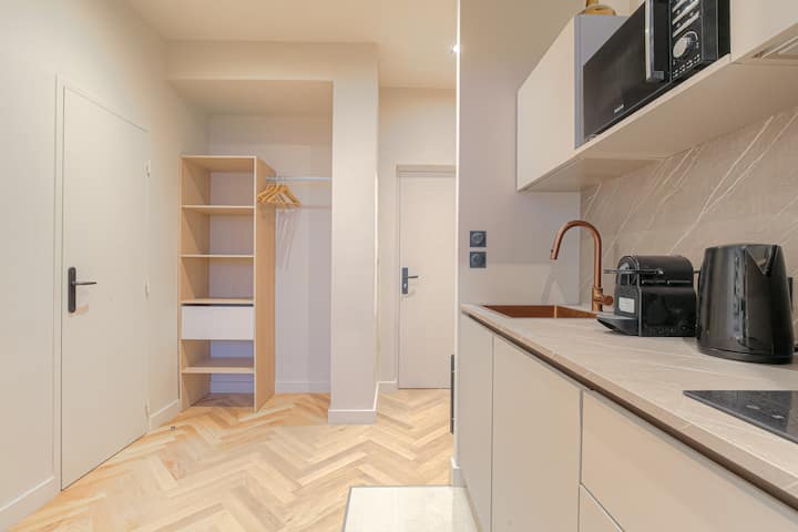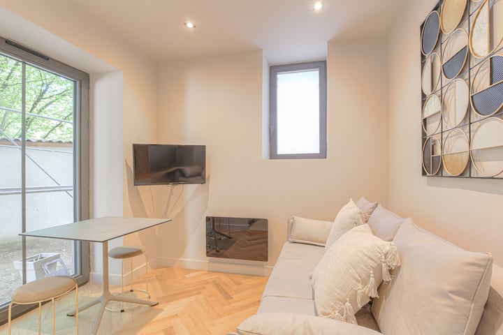 Избегајте во мирен, зелен амбиент на само еден чекор од Лион! Овој новореновиран стан ќе ве шармира со својот топол амбиент, идеален за релаксирачки моменти. Внатре, уживајте во светол, вкусно уреден простор кој ги нуди сите удобности што ви се потребни. Идеално за деловни патници, семејства или пријатели, се наоѓа на 20 минути од центарот на Лион и во близина на Екули и Дардили. За удобен престој се вклучени постелнина и капсули за кафе!