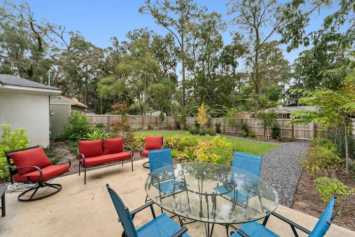 - Сместувања за изнајмување со простор за седење на отворено за одмор во Savannah