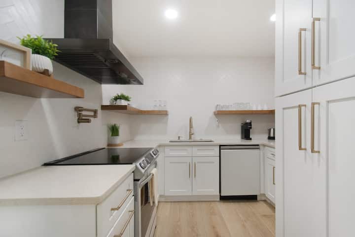 Целосно опремена и подготвена за вашиот внатрешен готвач, кујната има модерни апарати, садови за готвење, садови, прибор и машина за кафе Keurig. Уживајте во заедничките оброци на трпезариската маса на која удобно може да се сместат шест лица, веднаш до дневниот простор со отворен концепт.
