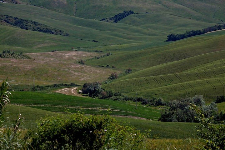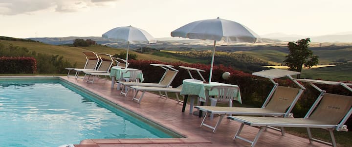 Моето семејство и јас живееме во срцето на Крете Сенеси каде што реновиравме стара фарма и ја претворивме во пансион со појадок.