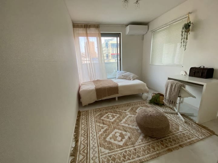 Нова двегодишна одвоена куќа е пренаменета за приватно сместување.Додека сте во Токио, може да го изнајмите целиот објект за да може да се опуштите во простор само за гости.Има 4 спални соби и може да се сместат до 6 лица без дополнителни трошоци.Дневната соба е мала, но кујната е системска кујна, па затоа е погодна за долгорочни престои.На 5 минути пешачење од најблиската станица!Има многу ресторани, супермаркети и сѐ друго веднаш до куќата.Исто така, се наоѓа на место богато со природа, со патека за пешачење во реката Тама, долината Акигава, Окутама и многу патеки за пешачење во рок од 30 минути со воз.Во близина се и топли извори.Имотот е исто така во близина на базата Јокота и има многу стилски продавници.Напролет, има и настани како што се Cherry Blossom Festival и Yokota Base Festival во текот на летото.Шопингот е достапен и до трговскиот центар на 2 станици со воз, а Aeon Mall е оддалечен 20 минути со автомобил.Трговскиот центар Outlet и Costco се исто така на 30 минути возење.Покрај тоа, погодно е да одите во Шинџуку и Токио без трансфер.Бесплатно е достапен паркинг до влезната врата на куќата.Во близина на куќата има вкусни ресторани.Има куќен водич за детали, затоа пристапете до него.