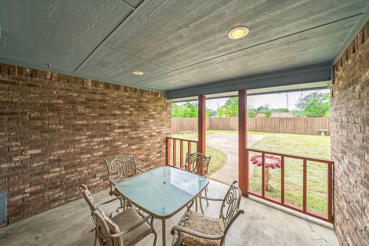 - Сместувања за изнајмување со простор за седење на отворено за одмор во Тексас