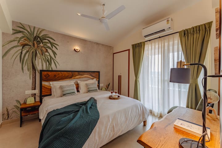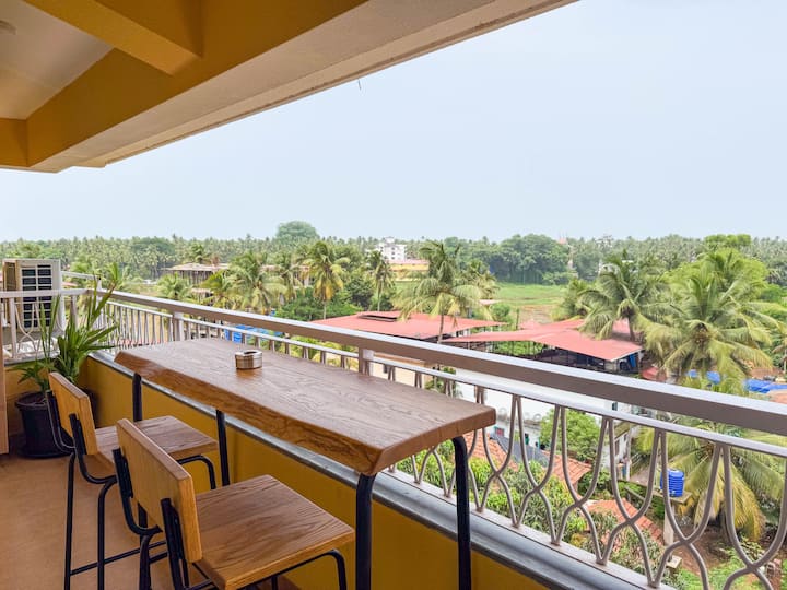 Просторен 2BR стан со балкон во близина на плажата Кандолим
