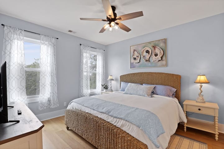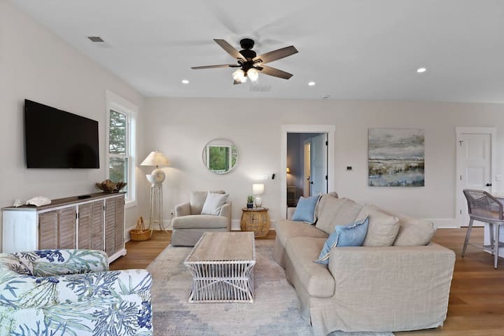 Влезете во простор за дневен престој и кујна со отворен концепт, целосно опремен за вашиот престој со шпорет на плин, модерни апарати и места за четири лица на пространиот кујнски остров. Крајбрежниот декор и внимателно осмислениот дизајн прават секој простор да изгледа како место за одмор.