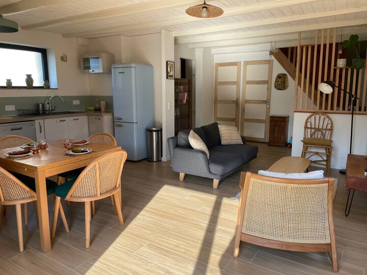 - Сместувања за изнајмување со простор за седење на отворено за одмор во Бретања