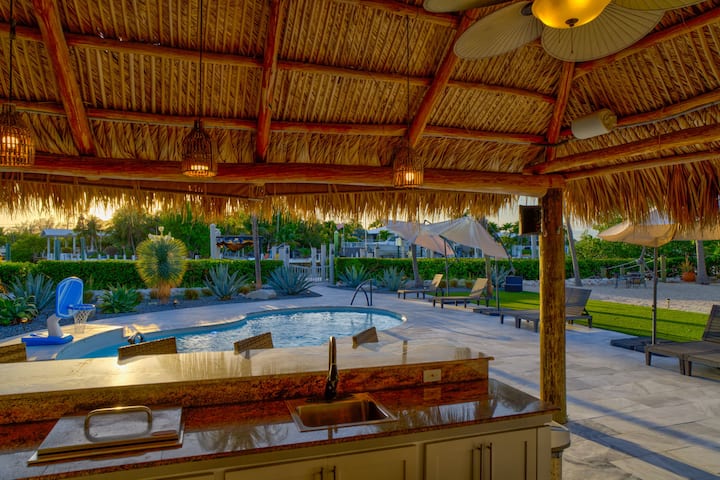 Луксузна оаза, базен, тики, пристаниште, во близина на плажа