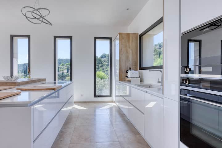 Агенцијата Cocoonr/Book&Pay ви ја нуди оваа шармантна, модерна, климатизирана вила за изнајмување во Котињак, во мирен амбиент со непречен поглед кон планините и масивот Морес, бескраен базен и површина од 260 м² која може да прими до 6 гости. Се одликува со атрактивна дневна соба од 90 м², кујна со отворен план, 4 спални соби со 4 туш кабини и приватна градина од околу 1500 м². Вклучен е wifi, ве чекаме!