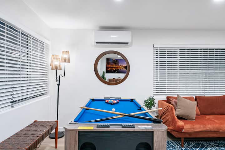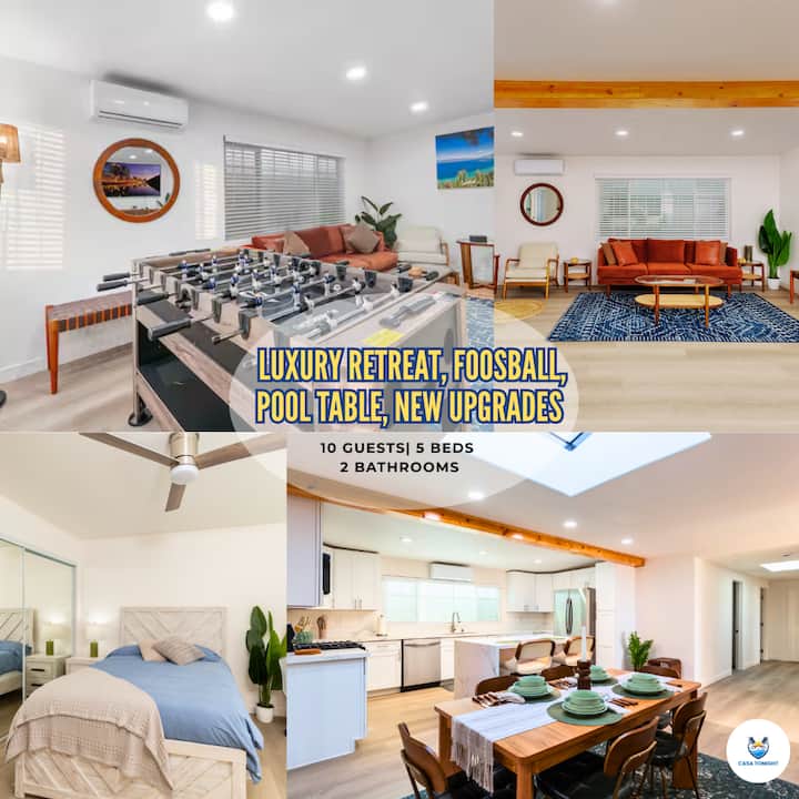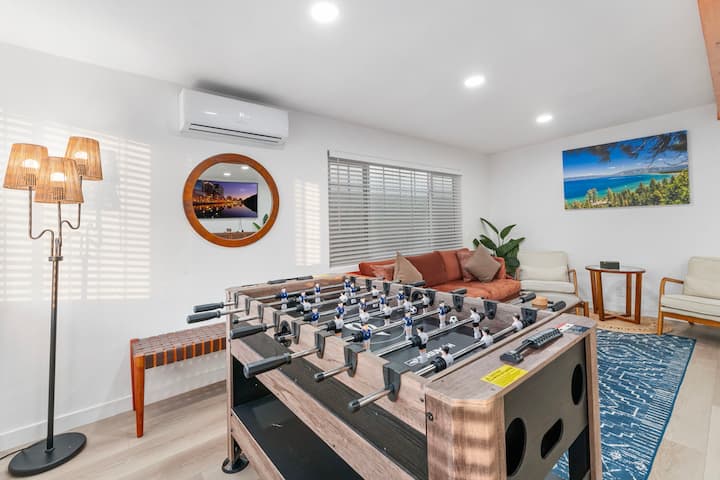 Уживајте во удобноста и стилот во овој простран модерен дом со 5 спални соби од средниот век во близина на плажата Коронадо. Секоја спална соба има биро, телевизор со стриминг и персонализирана контрола на климата за совршен престој. Со 2 целосни бањи, комплетно опремена кујна, игри и удобен простор за живеење/јадење, опуштањето е лесно. Дополнителните поволности вклучуваат машина за перење/сушење алишта во објектот и 3 места за паркирање. Идеален за истражување или опуштање, овој дом нуди погодно место за одмор без проблеми. Резервирајте сега!