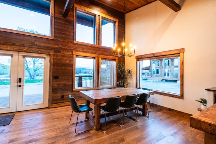 Добре дојдовте во вашето место за собирање во Вајоминг: две рачно изработени луксузни колиби една до друга, со 16 лица во 5 приватни спални соби (4 крала, 1 брачен кревет), удобна детска спална соба (4 близнаци) и табуретки за спиење за мали деца. Споделете оброци под ѕвездите, соберете се околу огништата и разбудете се во широко отворено небо врамено од планината Картер. Само 6 минути од срцето на Коди, со лесен пристап до авантури во Јелоустоун, родео ноќи и незаборавни западни хоризонти.