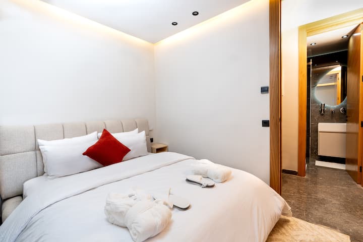 🛏️ Удобно спиење: опуштете се да спиете на премиум брачен кревет со висококвалитетна постелнина, обезбедувајќи мирна ноќ.
