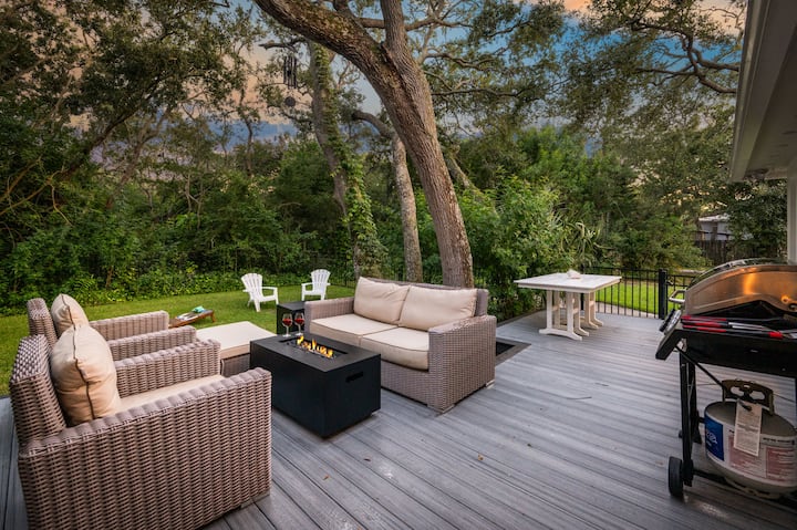 - Сместувања за изнајмување со простор за седење на отворено за одмор во St. Augustine