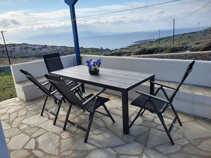 - Сместувања за изнајмување со простор за седење на отворено за одмор во Kea-Kythnos