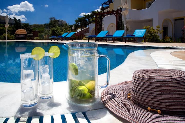 Со задоволство ќе ви останеме на располагање за сè што ви е потребно, додека Јота и другите членови на тимот на групата на змејови ќе бидат на островот Санторини за време на целиот престој во нашите прекрасни вили.