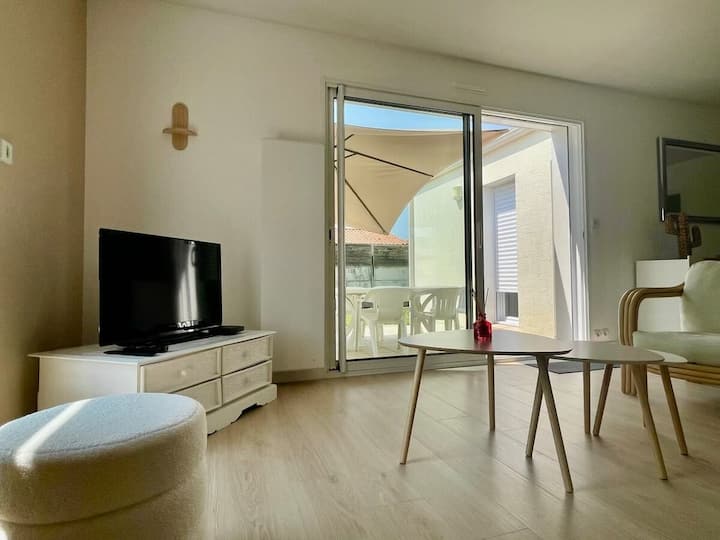 - Сместувања за изнајмување со простор за седење на отворено за одмор во Jard-sur-Mer