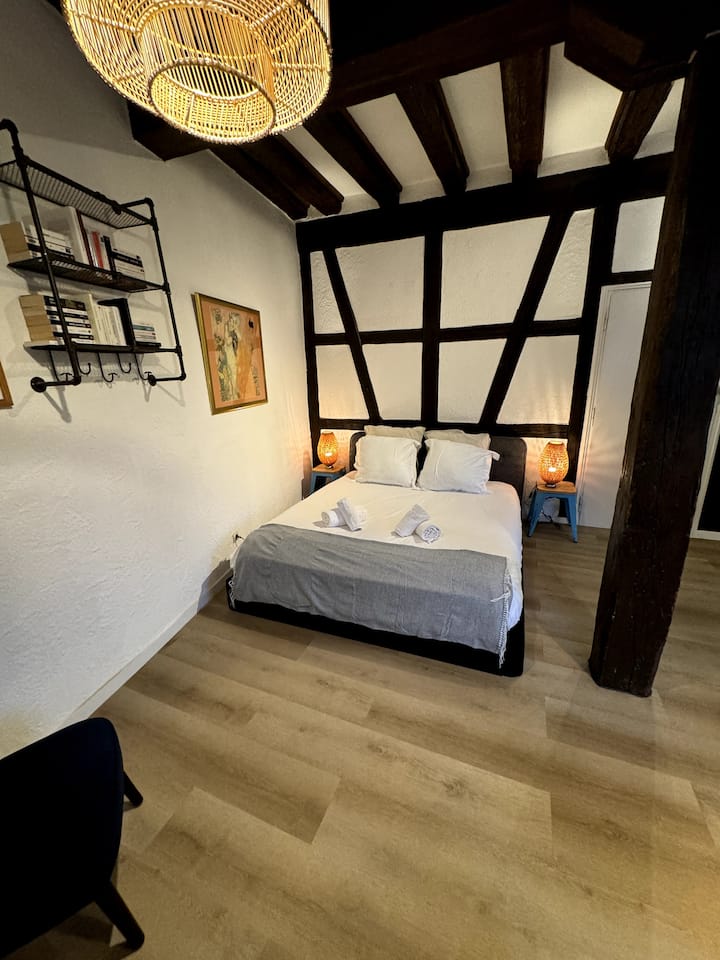 Добре дојдовте во апартманот Schwendi: Le Petit Tanneur, модерно и стилско студио среде Колмар, идеално лоцирано за целосно да уживате во историскиот центар со уникатен поглед на статуата на Швенди и околните пешачки улици.