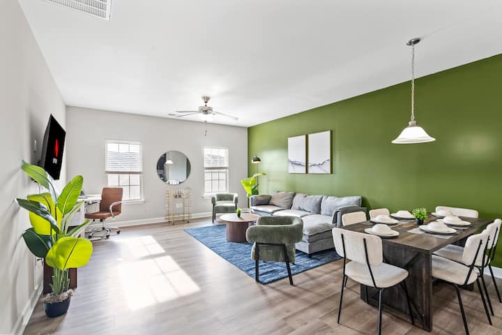 Останете со стил во еклектичниот град, дом на вториот по големина банкарски центар во САД - Шарлот! Оваа елегантна куќа со 3 спални соби и 2,5 бањи има 1 брачен кревет (широк 150-179 см) и 4 полни кревета за ваша удобност, брз wifi, кауч за спиење со кабриолет, целосно опремена кујна и други луксузни удобности - специјално дизајнирани за вашите подолги престои! Излезете во живо соседство, на неколку минути од градот Шарлот - чекори до ресторани, кафулиња, барови и продавници!