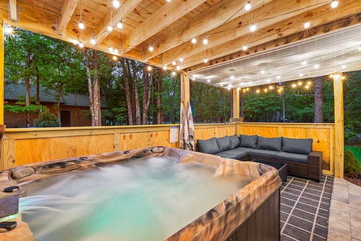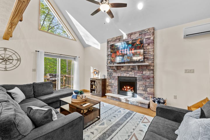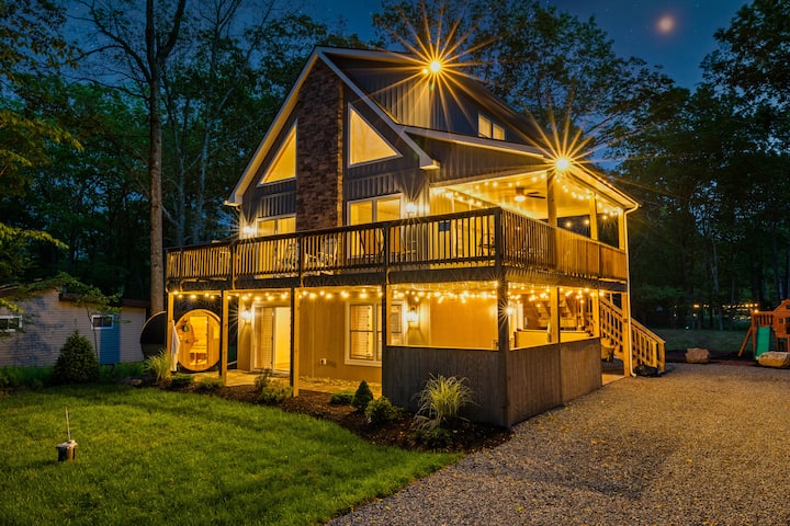 Избегајте во нашата удобна, пространа планинска куќа. Совршено е за семејства и пријатели! Во сопственост на три сестри, ова е топло, гостопримливо место за одмор со 5 спални соби на 3 ката. Уживајте во приватна хидромасажна када, сауна, игротека, комплет за играње, игри на отворено, сончева тераса и поплочен двор. Опуштете се, играјте и создавајте трајни сеќавања. Едвај чекаме да ве угостиме!