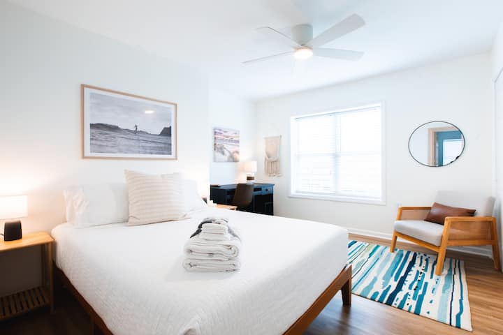 Стан за сурфање со ниска плима, пешачење до плажа, езеро и парк