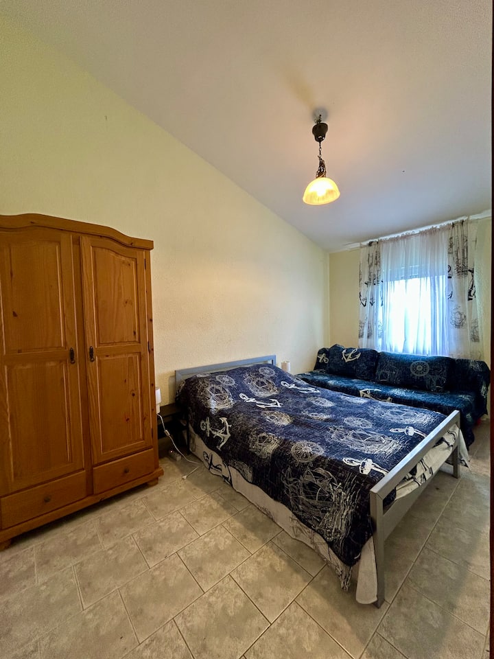 Станот се наоѓа на првиот кат и има посебен влез со надворешни скали. Внатре ќе најдете две одделни спални соби, секоја опремена со удобен двоен кревет и двоен кауч на спуштање, кои нудат прилагодливи аранжмани за спиење. Достапно е и бебешко креветче, што го прави просторот совршен за семејства со мали деца.
