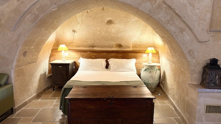 Помалиот семеен апартман е оддалечен 350 метри од Locanda di San Martino. Традиционална соба во пештера од 60 квадратни метри, со бања и туш. Не се препорачува ако имате проблеми со одење или одење по скали.