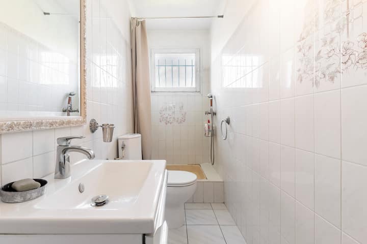 Удобна спална соба опремена со туш, приватен паркинг