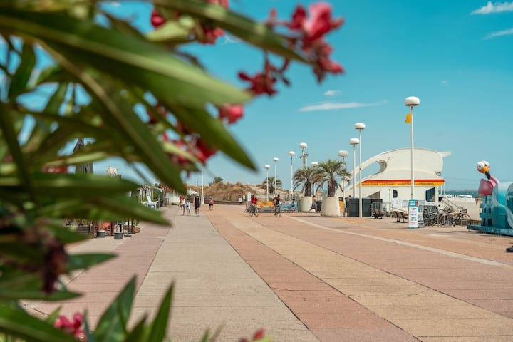 Cap Soleil е ветување за престој за двајца во срцето на Ла Гранде-Мот, помеѓу плажата, сонцето и удобностите. Удобно студио, исклучителна локација, одмор без автомобили. Сѐ што треба да направите е да ги спуштите торбите... и да уживате.