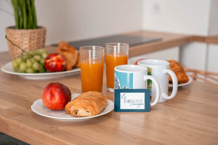 Удобно 🌞 студио за двајца во срцето на Самерсет во Ла Гранде-Мот, на 2 чекори од плажата 🏖 и продавниците🛍️. Удобен двоен кревет🛏️, простор за седење🛋️, 🍽️трпезарија☕, опремена кујна, бања 🚿 со туш кабина. Телевизор во собата📺, тавански вентилатор🌬️. Сместување со лифт🛗. Сите во непосредна близина🚶♂️, паркинг во близина🚗. Самопријавување🔑. Празници без стрес, само сонце и море.