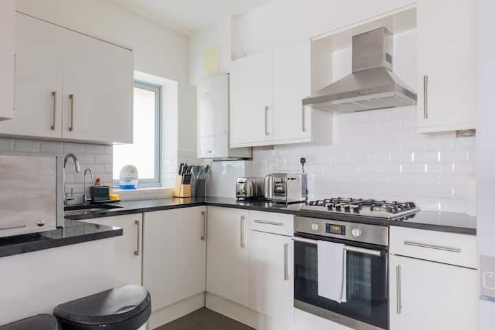 Влезете во ова засолниште во Источен Лондон - светол и простран стан со три спални соби сместен на само неколку чекори од Регентскиот канал и на кратка прошетка од станицата Кембриџ Хит. Овој привлечен дом ве става на крстосницата на културата, креативноста и практичноста. Излезете надвор и ќе се најдете на моменти од енергијата на Бродвејскиот пазар со неговите занаетчиски кафулиња и улична храна или цветниот пазар Колумбија Роуд - неделен главен производ за локалните жители и посетителите. Кратка прошетка ќе ве однесе до паркот Викторија, еден од најпосакуваните зелени површини во Лондон, совршен за утрински џогинг или лежерен пикник. Исто така, се наоѓате на чекор од динамичната уметничка сцена на Хакни, еклектичниот ноќен живот на Шордич и низа независни бутици и галерии расфрлани низ целиот регион. Добро поврзан со надземни и автобуски линии, станот нуди директен пристап до градот, улицата Ливерпул и други централни жаришта, што го олеснува истражувањето на сите краеви на Лондон. Внатре, станот се одликува со стилски модерен декор, великодушни простори за живеење и сѐ што ви е потребно за релаксирачки престој - идеално за групи, семејства или деловни патувања. Без разлика дали сте во посета за култура, работа или одмор за викенд, овој дом е вашата совршена база во Источен Лондон...