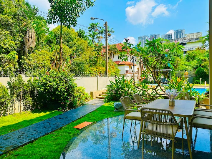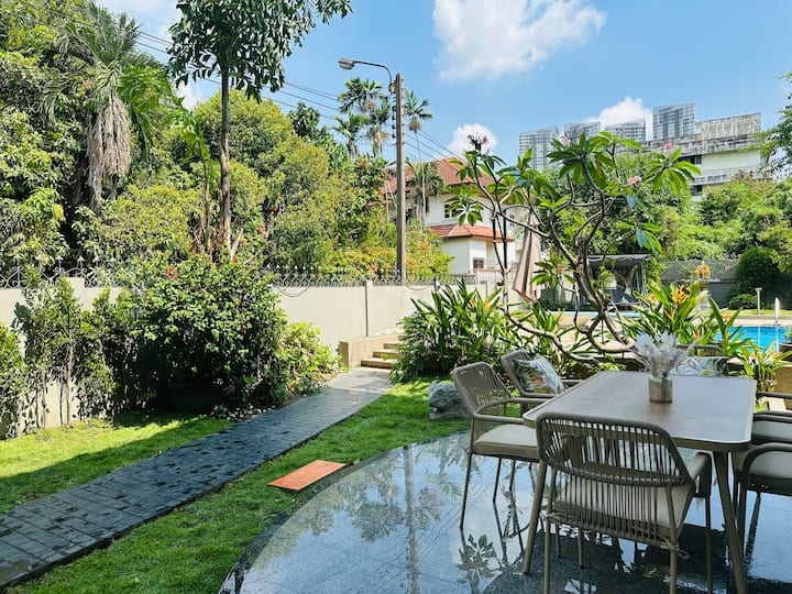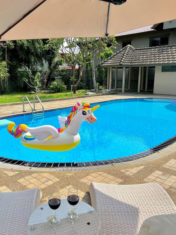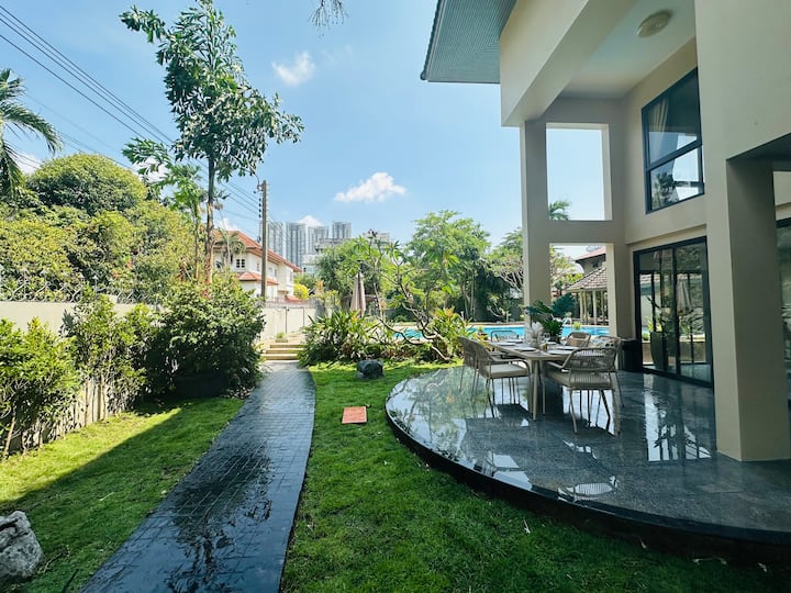Вила со базен во Бангкок | Сместување за 16 лица | Во близина на БТС | Секојдневно чистење | 1000 квадратни метри | Огромен базен