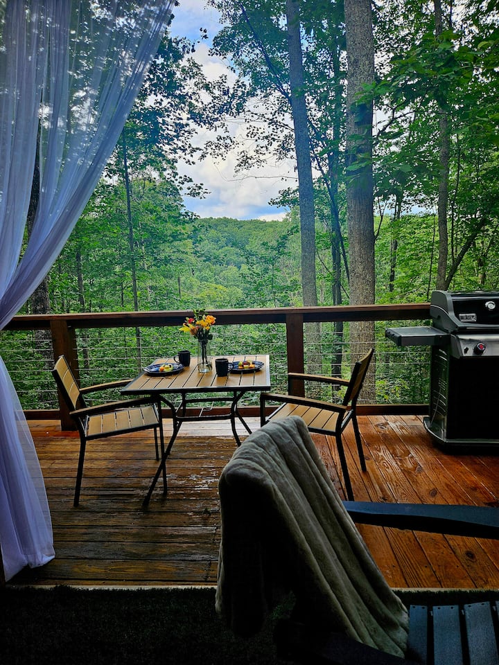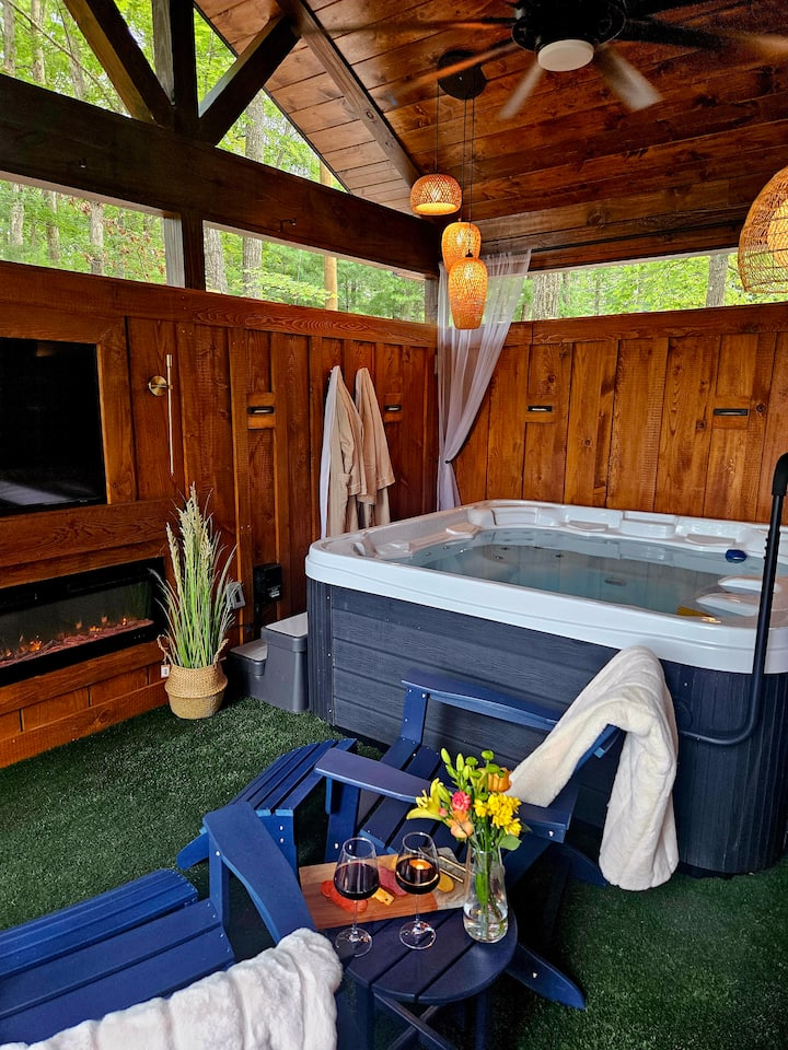 Ние сме Ерик и Одра Томас и поседуваме резерватот Хемлок, колекција на колиби изградени и дизајнирани за парови.