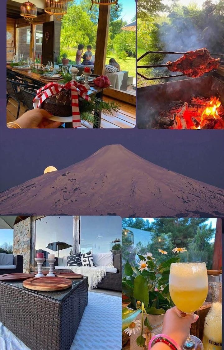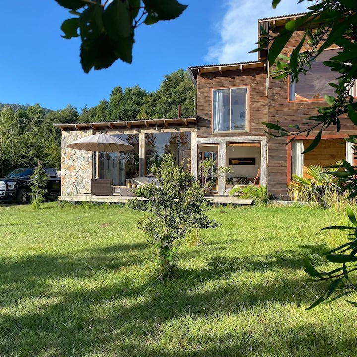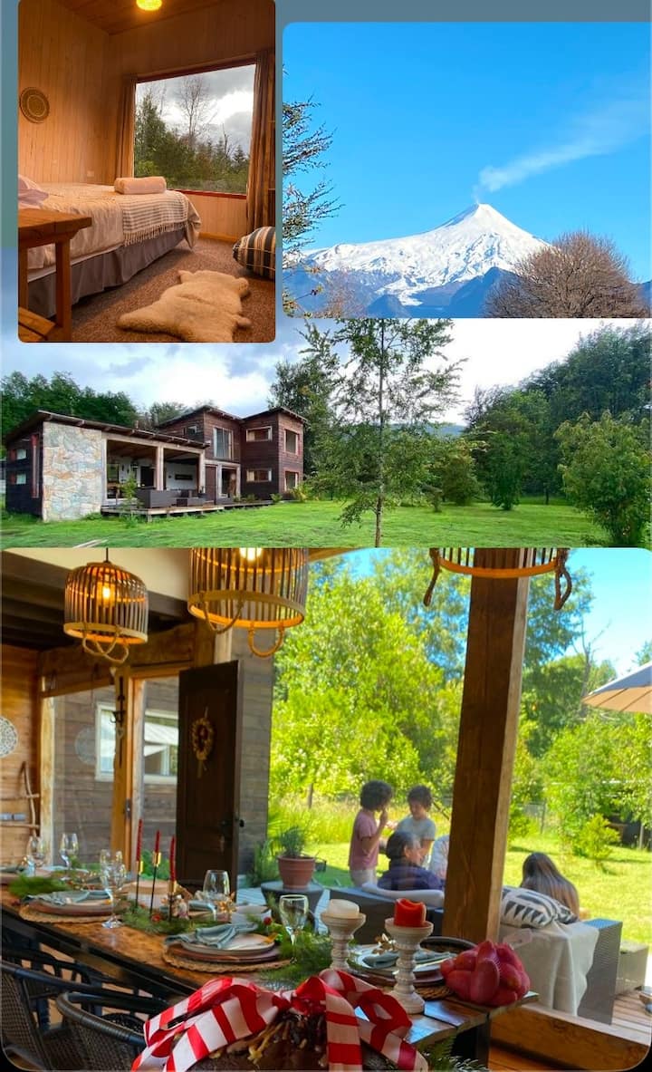 Куќа 2 големи колиби Пукон Кабургуа. Плажа, термални бањи