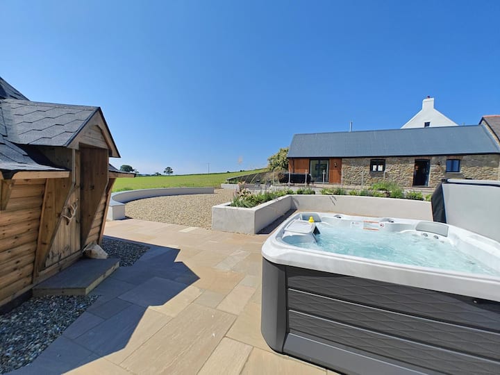 Овие патеки, вклучувајќи ги и деловите од историскиот витешки пат, кривулат низ античките шумски предели и минатите знаменитости како Блекпул Мил, на крајот ве водат до Нарберт, познат по своите независни продавници, занаетчиска храна и културен шарм. Одете на север за да се претопите во историјата и шармот на Сент Дејвидс или на југ за да уживате во традиционалниот ден во Тенби, кој е познат по шареното пристаниште, златните плажи и средновековните градски ѕидини. За семејствата, авантуристичката фарма Clerkenhill, семејните авантури на дивите езера и градините на замокот Пиктон се во радиус од 5 милји, додека Folly Farm Adventure Park и Zoo и Heatherton Word of Activities се оддалечени само 15 милји. Овој гостопримлив еднокатен имот е внимателно пренаменет за да го задржи својот рустикален карактер, вклучувајќи ги и изложените греди, сводести тавани и традиционални камени конструкции, истовремено воведувајќи луксузни модерни удобности за навистина релаксирачки престој. Дрвените подови, внимателно избраниот мебел и опрема и атрактивните уметнички дела создаваат мирна пријатна атмосфера во текот на целиот период. Кога влегувате во имотот, пространата кујна/трпезарија е совршен спој на шарм и функционалност, со добро опремена кујна, вклучувајќи индукциски шпорет Rangemaster, машина за миење садови Neff и фрижидер-фрижидер и машина за кафе Nespresso. Во одделна комунална соба уредно се наоѓаат машината за перење алишта, машината за сушење алишта и другите апарати за домаќинство. Во срцето на имотот, голема трпезариска маса нуди совршен амбиент за долги мрзливи оброци, семејни игри на табла или едноставно собирање заедно по еден ден истражување на она што Пемброкшир може да го понуди. Оваа соба се поврзува со соседниот салон со фантастична двострана рингла на дрва и француски врати кои се отвораат кон поплочениот двор. Исто така, ќе најдете прозорец од подот до таванот, кој ви овозможува да уживате во погледот на село и удобно седење за да се опуштите и да гледате филм или едноставно да се соберете за да уживате во спокојството што го нуди имотот. Вратете се низ кујната/трпезаријата со отворен план и нагоре по скалите и ќе најдете три убаво уредени спални соби и еден кревет со патент со големина на крал кој може да се постави како двокреветни кревети на ваше барање и две двокреветни соби, од кои едната може да се пофали со сопствена туш-кабина. И сопствената и елегантната семејна бања може да се пофалат со голем туш со врнежи од дожд, со додавање на самостојна модерна бања во семејната бања. Она што помага да се направи овој имот уникатен е огромниот надворешен простор достапен за гостите и кратко; ексклузивна употреба, заедно со голема продавница за чување на каква било опрема што може да ја понесете, како што се велосипеди, кајаци, стикови за голф итн. Голем тревник, погоден за игри и уживање, се наоѓа надвор од внимателно планираниот надворешен простор, нудејќи одделни простори за забава, јадење и релаксација. Благосостојбата е вткаена во секој детаљ: започнете ја вечерта со освежителен надворешен туш со ладна вода, по што следи впивање во вашата приватна хидромасажна када и луксузно место за опуштање и гледање како се појавуваат ѕвездите. Вистинска одлика е вашата затворена колиба за скара и ретка викендичка и простор во текот на целата година, без оглед на временските ус