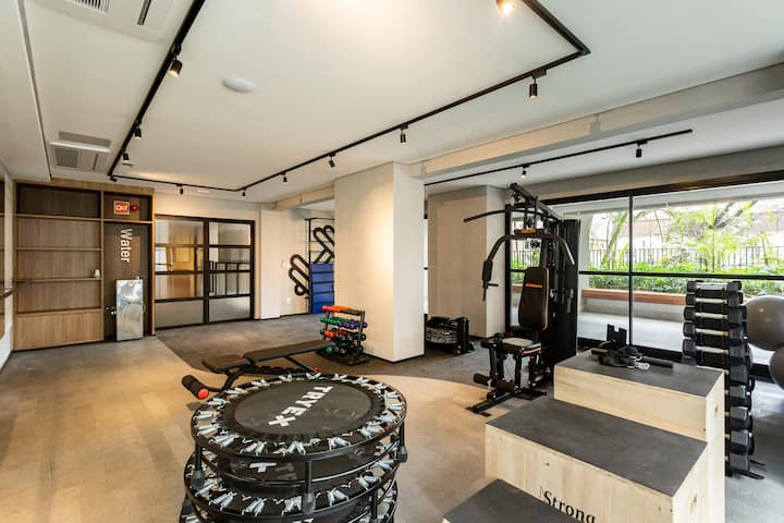 За вежбање ви се достапни следниве удобности: лента за трчање и тегови.