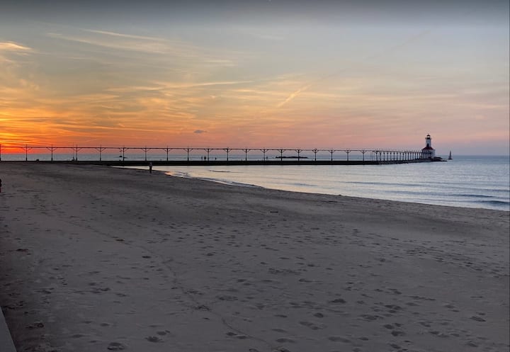 Сосема нов оглас за изнајмување! Бегајте во нашиот централно лоциран и ново освежен дом на само 5-10 минути од плажи, дини, јадење, шопинг или казина во и околу Мичиген Сити. Опуштете се и уживајте во нашиот простран тревник каде што можете да правите скара на скара или да печете павлака околу огништето. Во овој стан со 2 спални соби и 1 бања на горниот кат, ќе спиете мирно во нашите убаво наместени спални соби со сосема нови душеци и завеси за затемнување на собата.