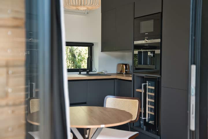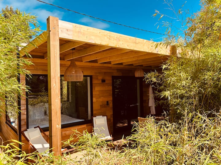 Почестете се со уникатен одмор во нашата интимна викендичка од висока класа, сместена во срцето на зелен амбиент помеѓу бамбус, мирно езерце и свртено кон каналот Бриаре.