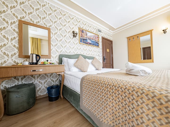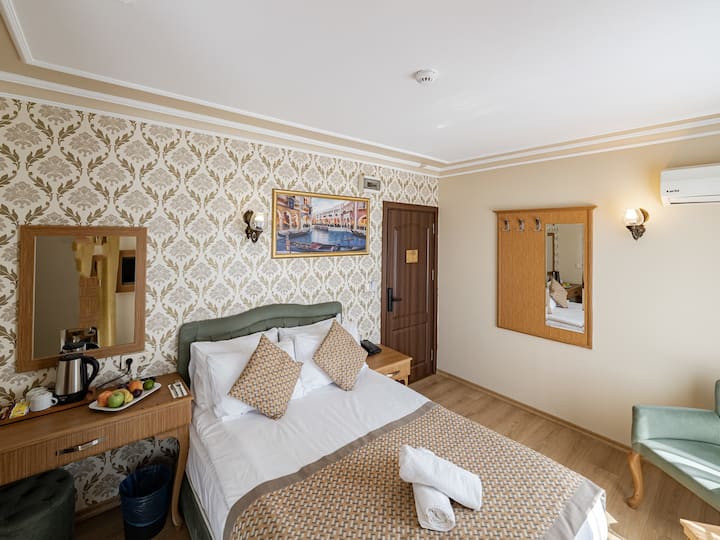 Grand Hamit Hotel е градски хотел со квалитетен и пријателски пристап за услуга. Нашиот хотел, кој има пространи, пространи и удобни соби, им нуди на нашите гости уникатно сместување кое нема да биде нивен дом. Собите имаат телефон, бесплатен Wi-Fi, LCD телевизор, мини бар, клима уред, сеф, комплет за чај и кафе, комплет крпи, фен за коса, материјали за букет, удобности. Нашиот хотел служи со концепт за ноќевање со појадок.