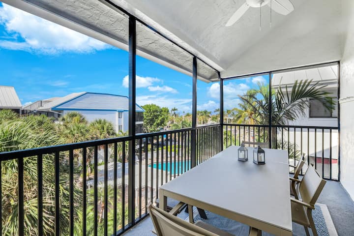 - Сместувања за изнајмување со простор за седење на отворено за одмор во Sanibel Island