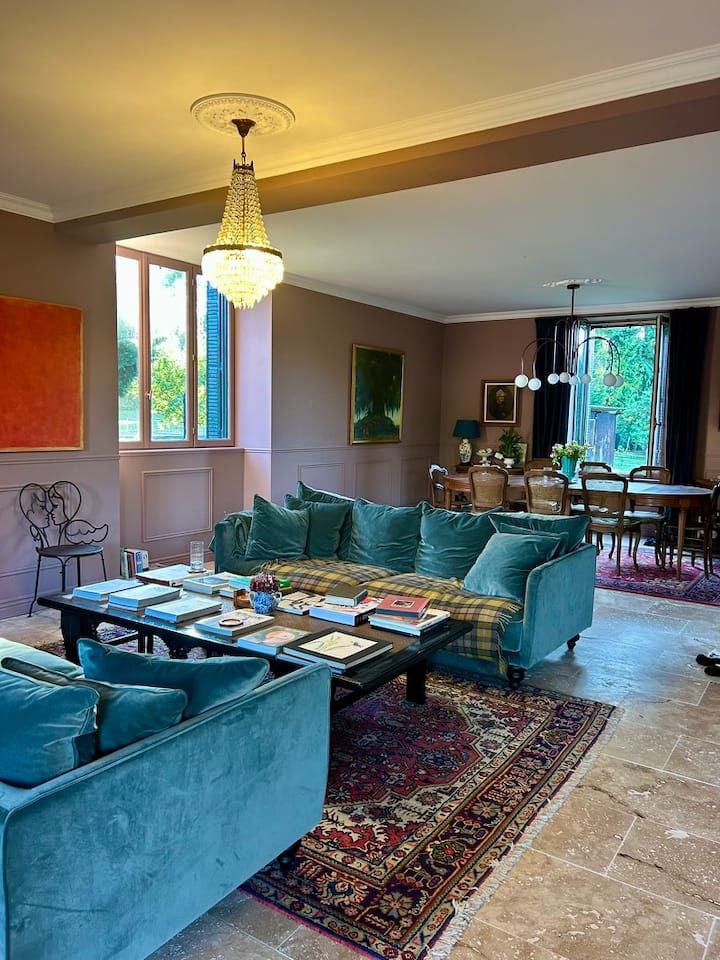 Има многу заеднички простори во и околу куќата со малата библиотека за да уживате во книгата, големата дневна соба за да седите и да се восхитувате на околните глетки или тајните градини за да пиете чај или чаша вино и да вдишете свеж бургундски воздух. Со најмногу 6 гости во секое време, секогаш ќе најдете тивок приватен простор или еден за да се соберете со другите за да запознаете нови луѓе и да стекнете нови пријатели.