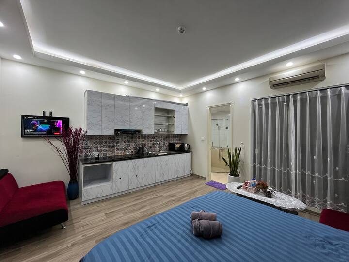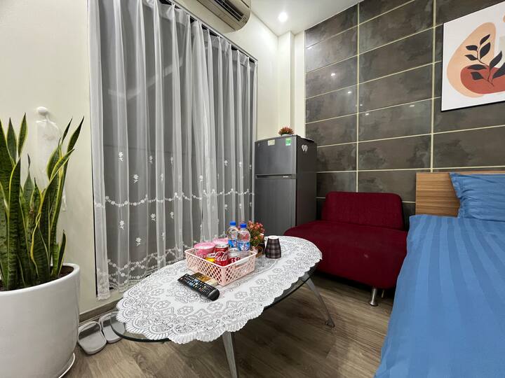 Овој удобен стан од 40м² во Т Лиен има брачен кревет, флексибилно пријавување/одјавување и целосни удобности во собата: паметен телевизор, клима уред, фрижидер, чајник, фен за коса, пегла и друго. Во бањата има чисти крпи, шампон и гел за туширање за ваша удобност.