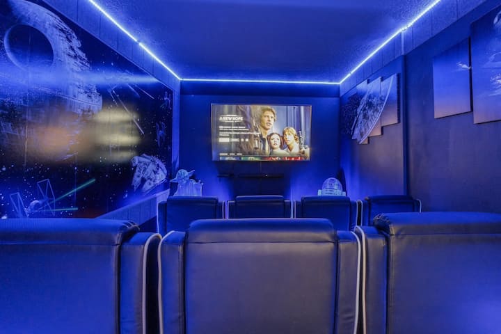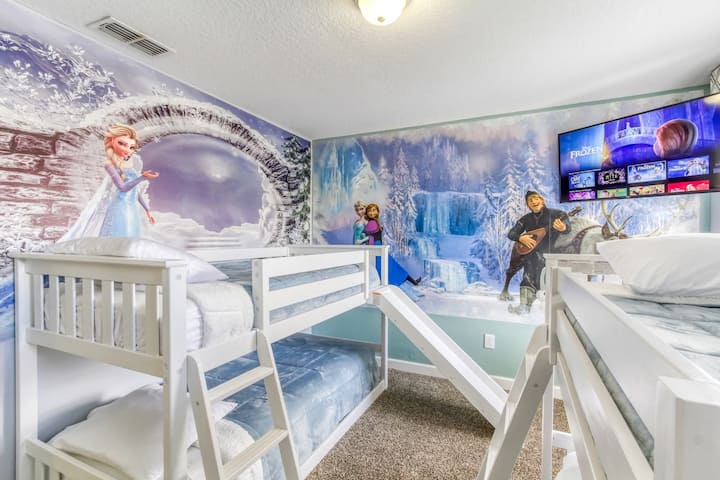 Добре дојдовте во вашето одмор од соништата во Дизни! Овој просторен дом со 6 спални соби во Парадајз Палмс е на само 5,5 километри од „Царството на животните“. Уживајте во приватен базен со греење (достапно е греење на базенот, се плаќа однапред), домашно кино, соба со аркадни игри, целосна кујна и катче во стилот на Хари Потер. Удобностите во резортот вклучуваат базен, сала за вежбање и клубска куќа. Влез со порта со пријавување кај консиерж (8:00–22:00 ч.). Резервирајте го вашиот магичен престој!