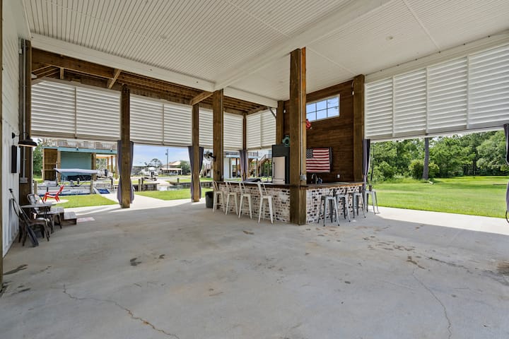 Прибежиште на брегот со базен и пристаниште