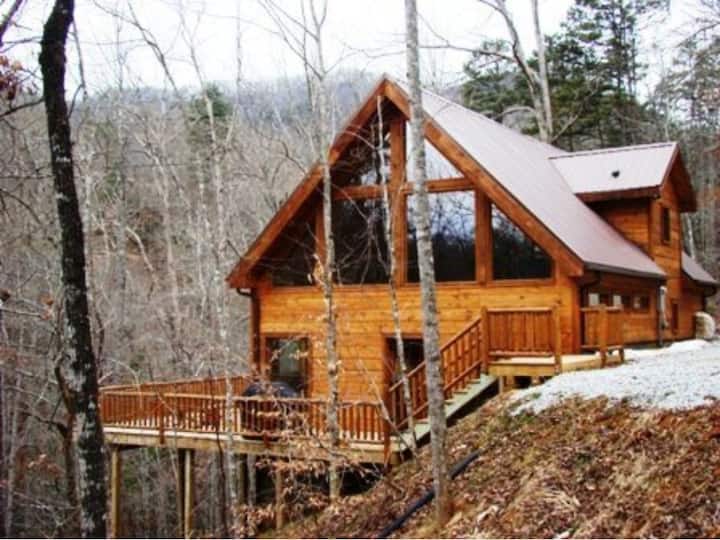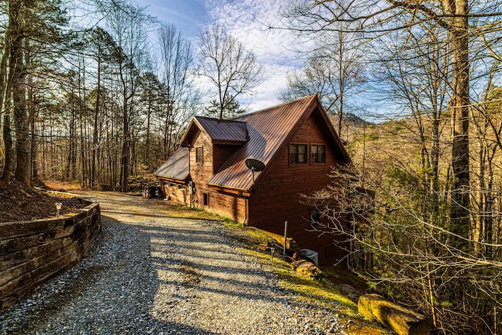 Бегајте во White Tail Hollow! Удобна дрвена колиба со 2 BR, 2,5 BA и неверојатен поглед кон шумата. Уживајте во проверен трем, хидромасажна када и огниште. Во близина на реката Нантахала и паркот Цали Рек. Совршено за семеен или романтичен одмор