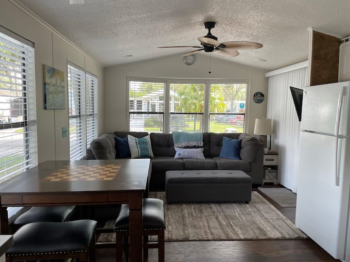 Сместен во наградуваниот резорт Sun Outdoors во прекрасната Сарасота, овој простран и внимателно дизајниран модел на парк нуди совршен амбиент за опуштање, повторно поврзување и впивање на сонцето. Без разлика дали уживате во тивко утринско кафе во покриениот поплочен двор, го поминувате денот на плажа или се опуштате во климатизираното ланаи по забавата во резортот, Sunshine Escape ве поканува да забавите и да уживате во секој момент.