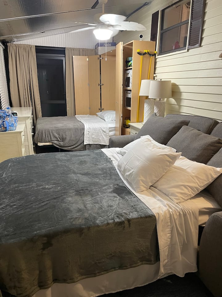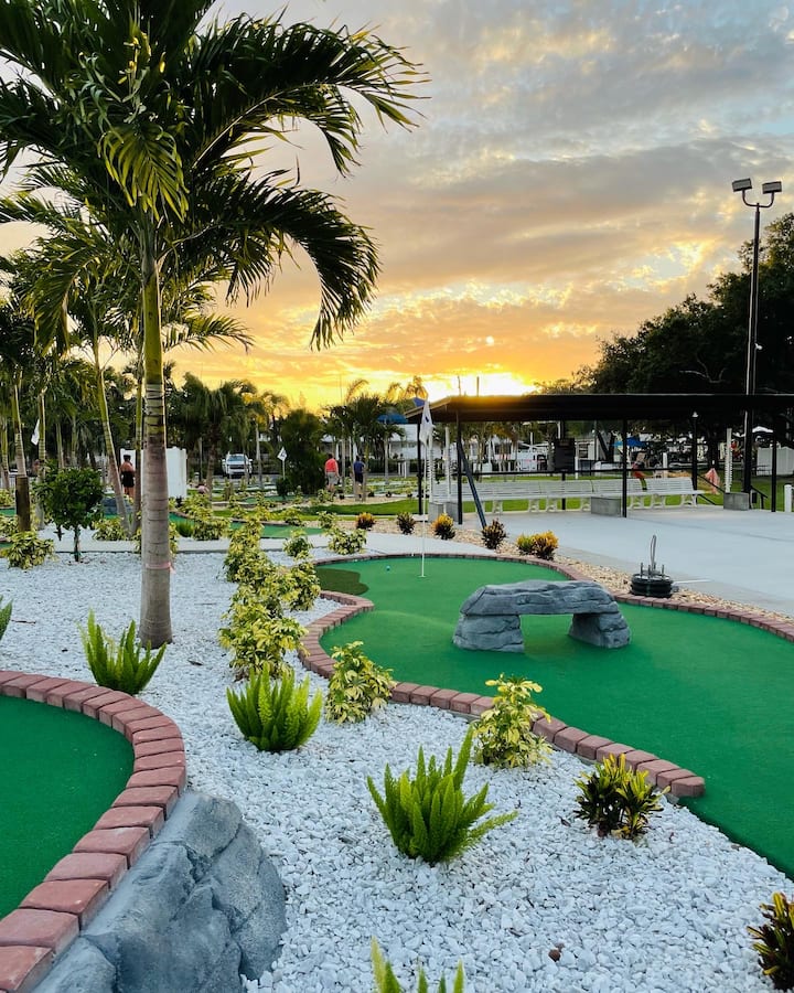 Нурнете се во внатрешни и надворешни базени, впијте се во хидромасажни кади и истражете над 150 бесплатни резортски активности! Овој модел на резорт парк за одмор со 6 лица има брачен кревет (широк 150-179 см), кревет „Марфи“, каучи за спиење, целосна кујна, машина за перење/сушење алишта, 3 паметни телевизори и брз Wi-Fi. Уживајте во приватен поплочен двор со места за седење, скара Blackstone и опрема за плажа за сончеви авантури. Вашето совршено место за одмор на семејството Сарасота ве чека!