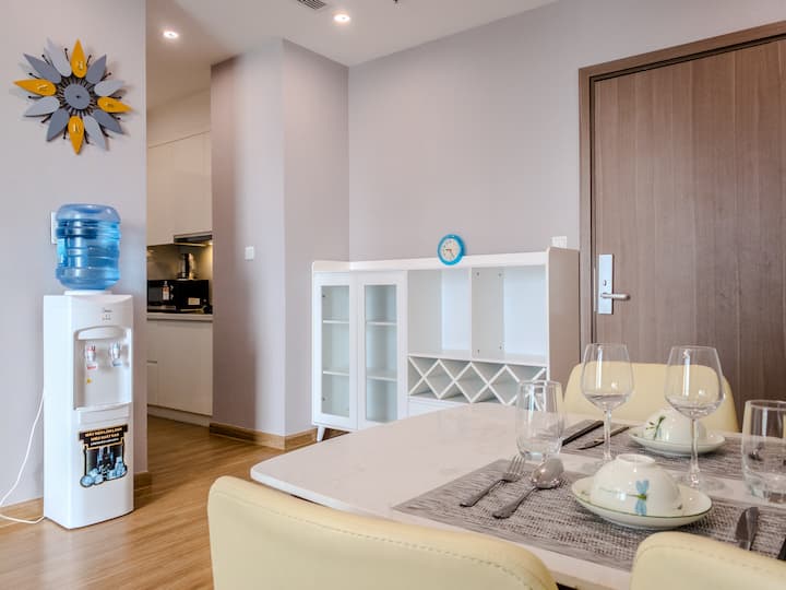 ♪ „СИТЕ ВО ЕДНО“ - Клиентите можат да најдат сѐ во подножјето на зградата, како што се: VINCOM MEGA MALL (на 1 кат), продавници за намирници, кафулиња или корејски, јапонски, виетнамски ресторани (на 1,2,3 кат од зградата). Сала за вежбање и внатрешен базен (на 3-ти кат) или надворешен базен, парк и детски простор за играње (на Т кат).