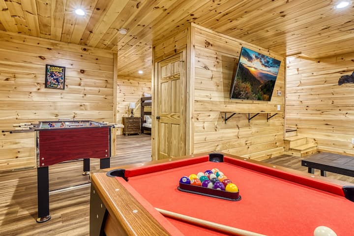 Опуштете се во оваа пространа колиба со 4 спални соби и 3,5 бањи во резортот Шагбарк, Севиервил. Mountain Spirit спие 12 лица и има хидромасажна када, игротека, целосна кујна, камин и машина за перење/сушење алишта. Уживајте во шумски поглед, приватна тераса со скара и удобности во резортот како сезонски базен, игралиште и фризби голф. Само неколку минути од авантурите Pigeon Forge и Smoky Mountain.