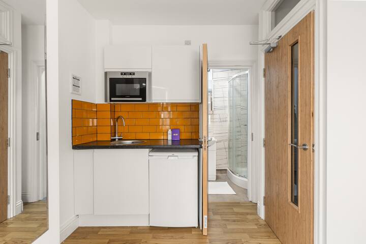 Ова внимателно дизајнирано студио на приземје нуди мирен, самостоен простор - идеален за оние кои бараат едноставен, но удобен престој во северен Лондон. Со сѐ што ви треба на дофат, ова е совршена база за самостојни патници кои ја ценат приватноста, практичноста и лесниот пристап до градот.