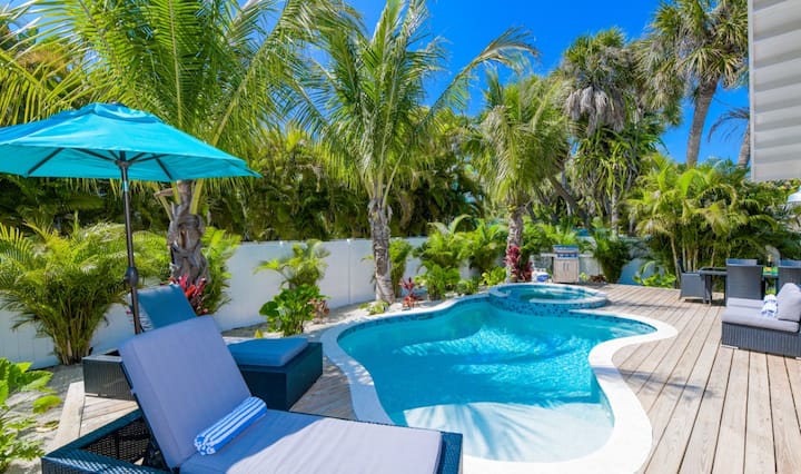 Ново!~Базен со греење! Чекори до плажа~Приземје!