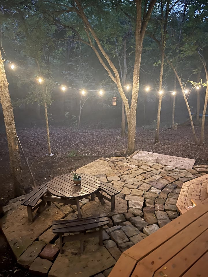 - Сместувања за изнајмување со простор за седење на отворено за одмор во Waxahachie